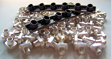 | Shank nuts are high-temperature components of aircraft engines. These fasteners are able to withstand tremendous stress and extreme temperatures. They are manufactured in a variety of configurations and materials and are installed by flaring the nut shank with a conical tool. |